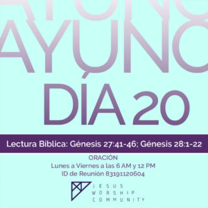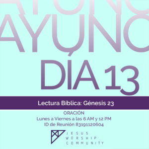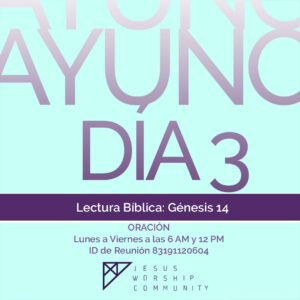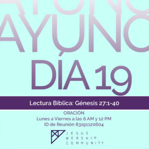 - Durante el ayuno debes tener tiempos de oración individual y puedes unirte a los tiempos de oración grupal a las 6:00 AM y 12:00 PM por Zoom ID 83191120604.
