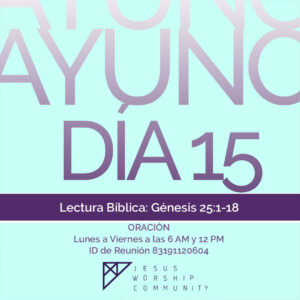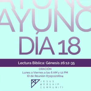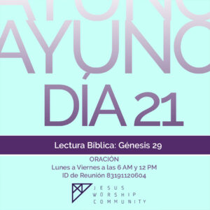EL AYUNO consiste en abstenerse de comer o beber, incluso agua, durante 9 horas desde las 6:00 AM hasta las 3:00 PM durante 21 días, desde el DOMINGO 12 de ENERO hasta el DOMINGO 2 de FEBRERO, para acercarnos a Dios en oración y someternos a su voluntad y propósito.